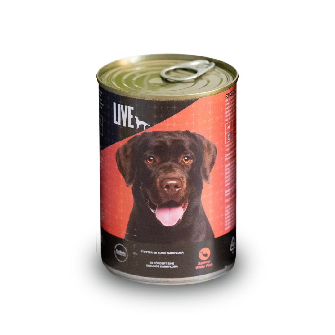 LIVE – wet dog food. All breeds and ages – Salmon 395g