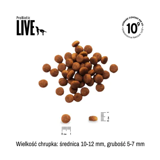 Linia ProBiotic LIVE to karma stworzona z mięsa mięśniowego najwyższej jakości, poddanego procesowi powolnego suszenia (dehydratyzacji). Mięso wykorzystywane w procesie produkcji pochodzi wyłącznie od certyfikowanych dostawców z Unii Europejskiej. ProBiotic LIVE zawiera białko, które dzięki hydrolizie (proces rozbicia na mniejsze cząsteczki), jest łatwiej przyswajalne i mniej alergizujące dla psa.